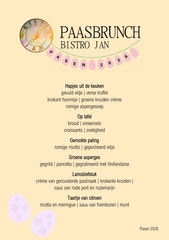 Bij Bistro Jan vieren we Pasen graag uitgebreid met een heerlijke Paasbrunch op 1e en 2e paasdag
