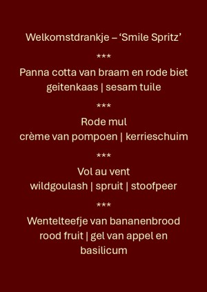 Tussen het lachen door geniet je van heerlijke gerechtjes, geserveerd in meerdere gangen bereidt door ons keukenteam.